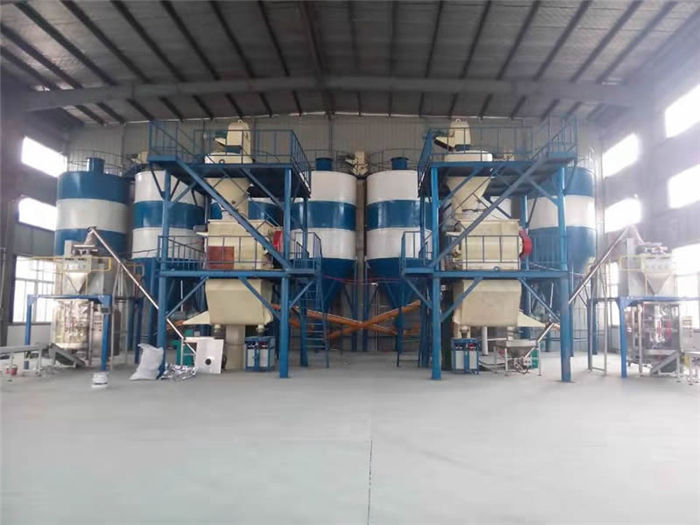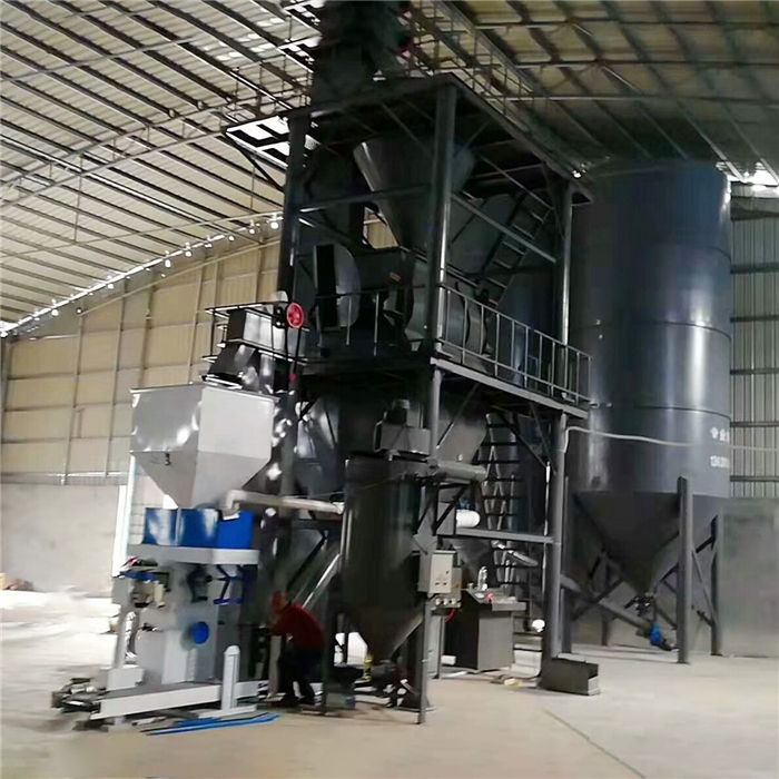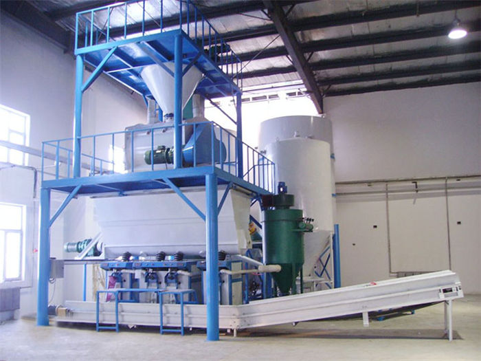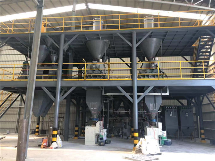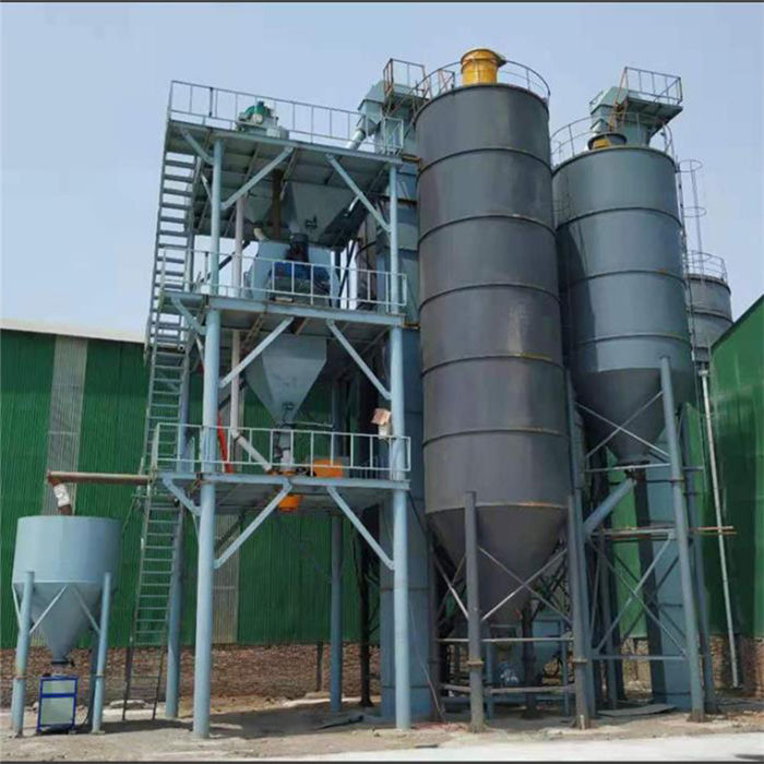 該套生產線由砂子烘干系統及預拌砂漿混合系統兩部分組成。主要包含:砂子烘干系統、篩分輸送系統、原料儲存系統、高效混合系統、自動配料系統、氣動平衡系統、除塵系統、袋式包裝系統、散裝罐車專業包裝系統以及PLC自動控制系統等。